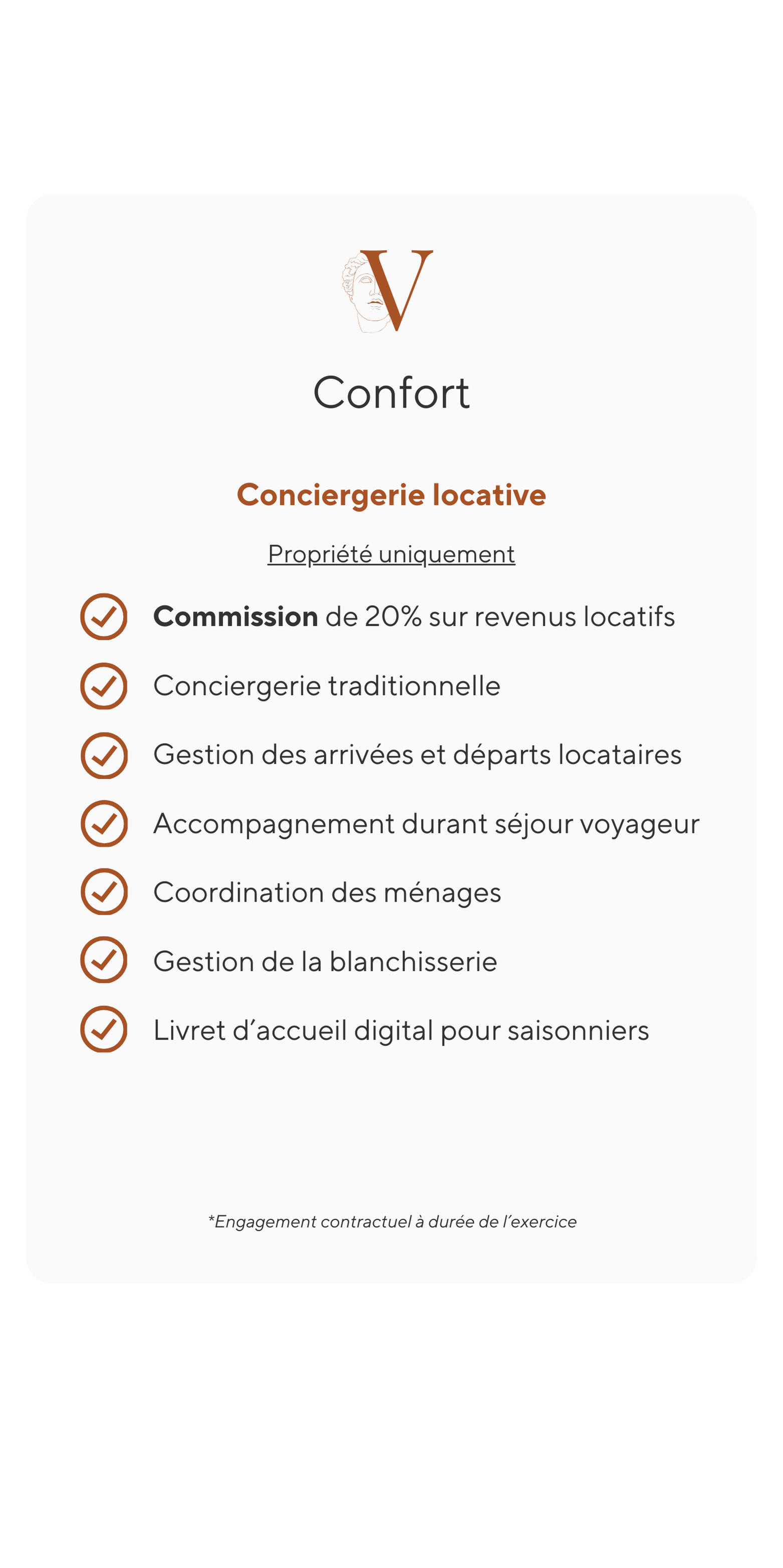 Le système d'abonnement de La Vénitienne se distingue par un suivi précis et annuel de votre bien immobilier. Bénéficiez d'une gestion professionnelle et minutieuse, assurant des revenus passifs optimisés et une tranquillité d'esprit tout au long de l'année.